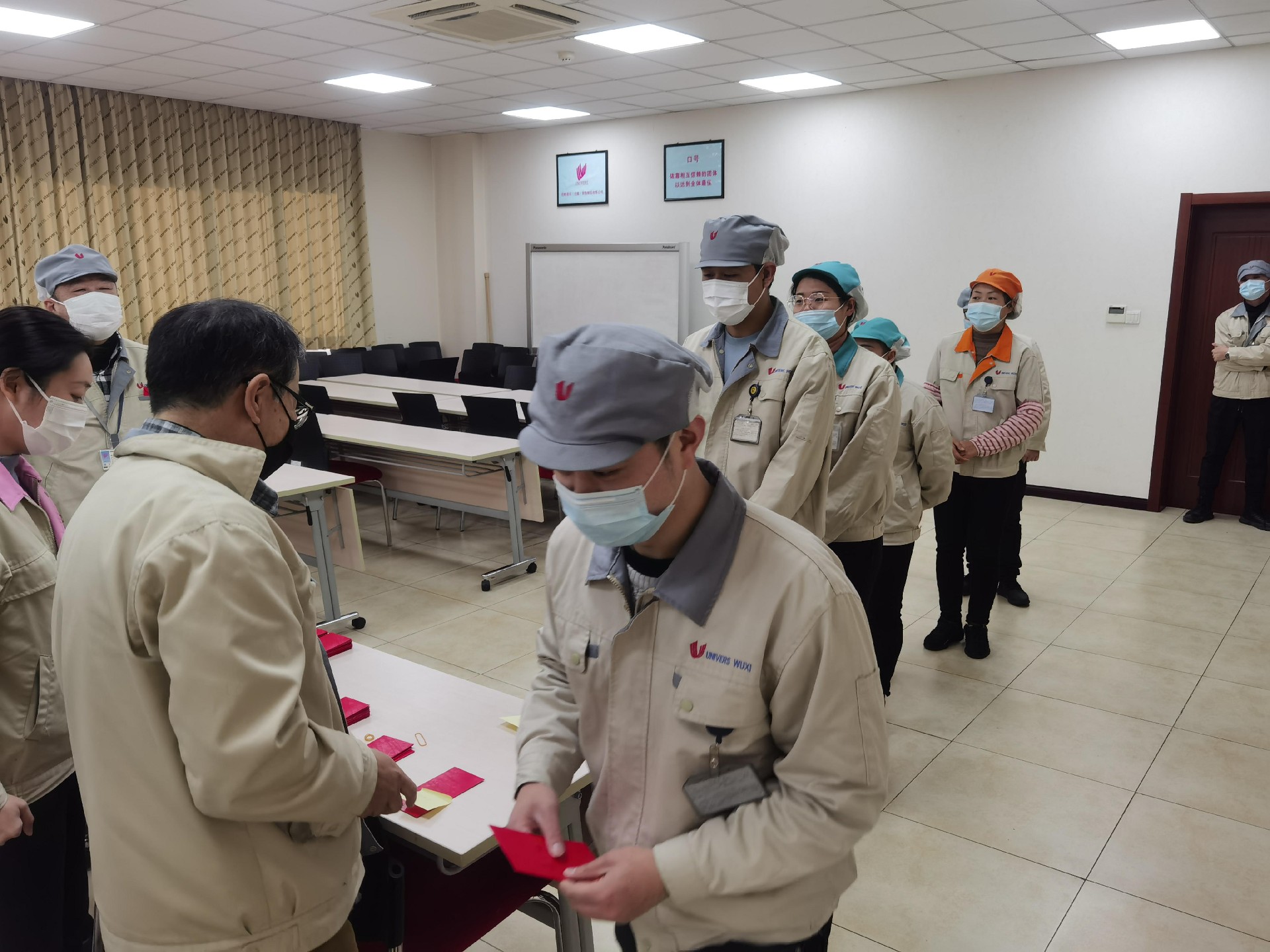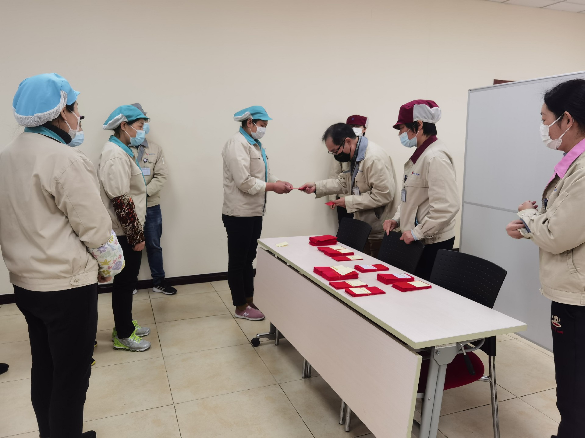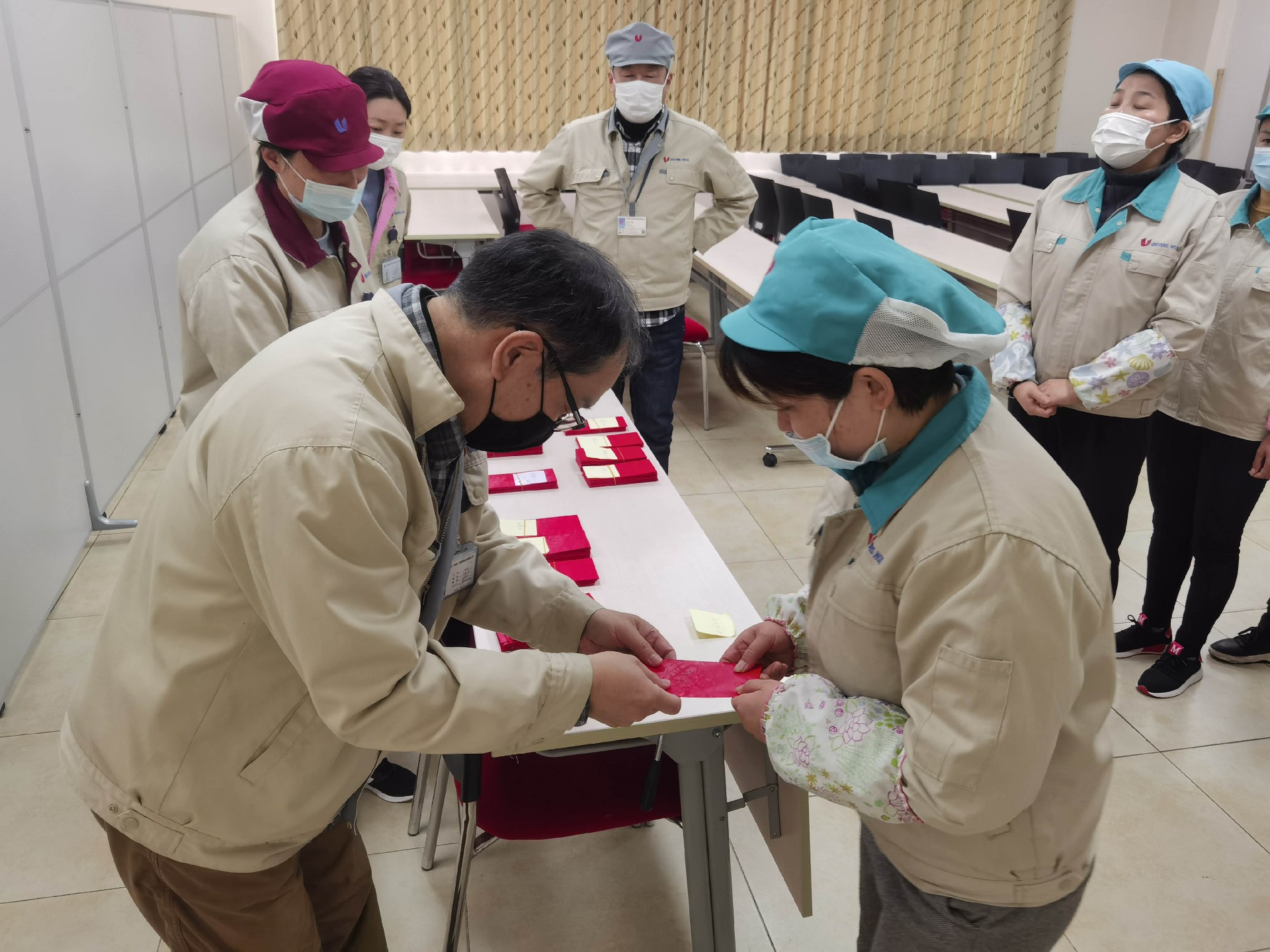 公司总经理和各部门领导早早来到了公司,为每一位员工准备了一份开年红包。还附上了新年寄语。同事们拿到新年红包,心里美滋滋,暗暗激励着,新的一年再接再厉再创辉煌。