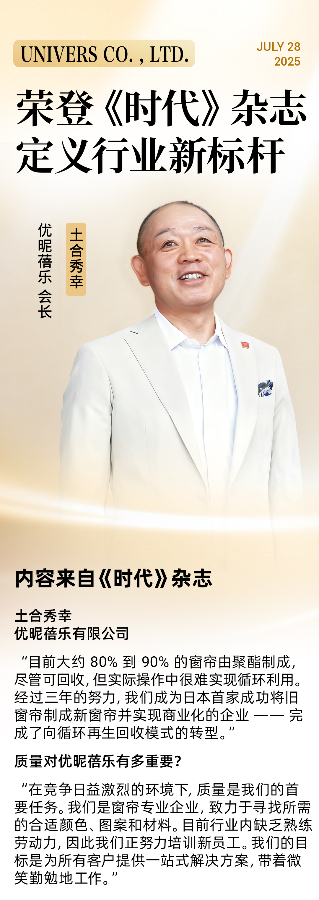 【重磅】土合秀幸 会长,荣登《时代》杂志!优昵蓓乐定义行业新标杆!